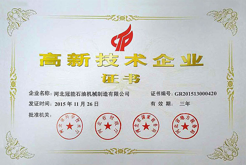 近日,河北冠能固控榮獲“高新技術企業(yè)”證書。由全國高新技術企業(yè)認定管理工作領導小組審定,省科技廳、省財政廳、省國家稅務局、省地方稅務局聯(lián)合正式頒發(fā)“高新技術企業(yè)”榮譽證書。這是相關政府部門給與冠能固控持續(xù)進行研究開發(fā)與技術成果轉化的發(fā)展模式的肯定,更預示著冠能固控未來的發(fā)展將步入科技創(chuàng)新的快車道。