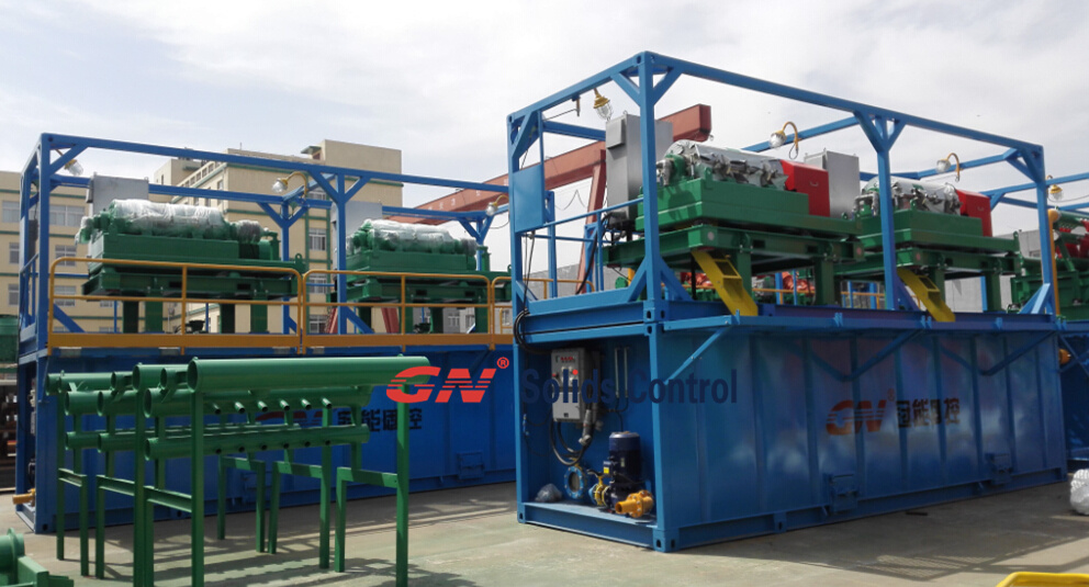 3、2臺變頻GNLW452-VFD泥漿離心機(jī),2個(gè)20尺集裝箱大型的泥漿罐。