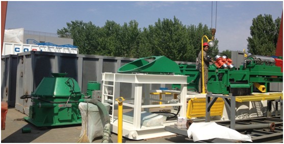 在鉆井現(xiàn)場(chǎng)兩臺(tái) GNZS853 140m³/h處理量的鉆井液振動(dòng)篩分離回收鉆井泥漿中大量的固相顆粒。一臺(tái)除砂除泥器一體機(jī)(GNZS853-3S16N,3個(gè)除砂旋流器和16除泥旋流器)分離比較小的固相顆粒。通過(guò)凈化的鉆井泥漿,達(dá)到了很好的凈化效果。 作業(yè)現(xiàn)場(chǎng)臥螺離心機(jī)安裝在泥漿罐上用來(lái)控制在鉆井地層發(fā)生變化時(shí)回鉆泥漿的穩(wěn)定性,同時(shí)可以根據(jù)現(xiàn)場(chǎng)需求配備不同比重的泥漿。